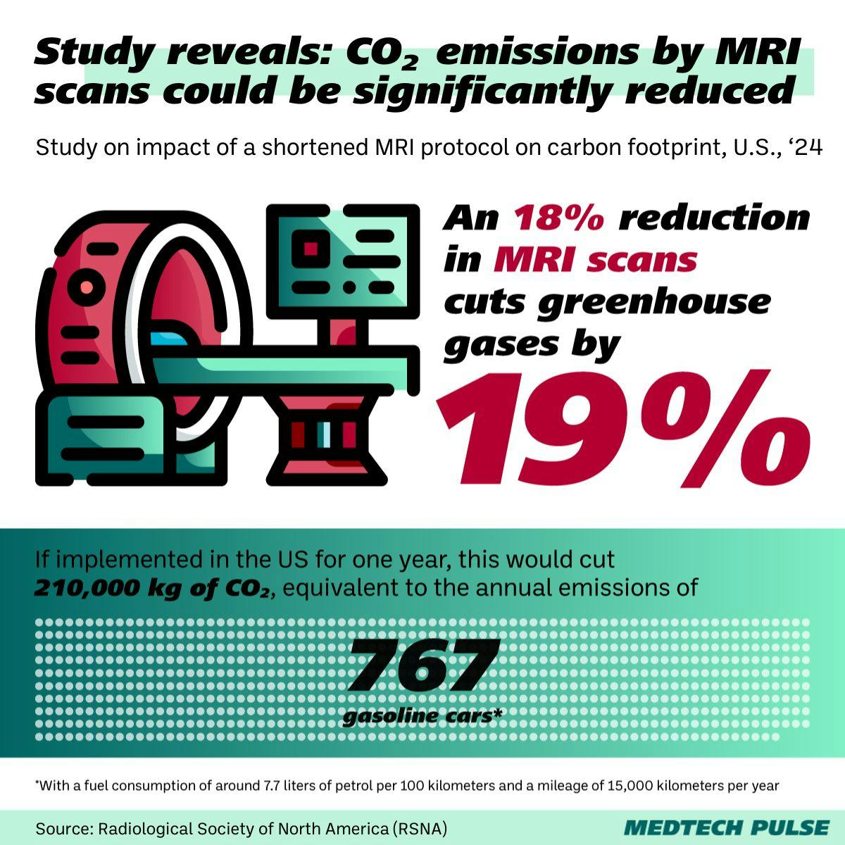A study of the latter intervention in MRI protocols was associated with an 18 percent reduction in scan duration, a 19 percent reduction in energy use, and a 19 percent reduction in emissions.